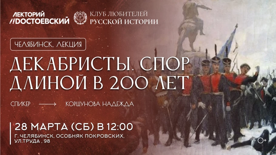 Челябинский клуб любителей русской истории приглашает на историческую лекцию "Декабристы. Спор длиной в 200 лет".
