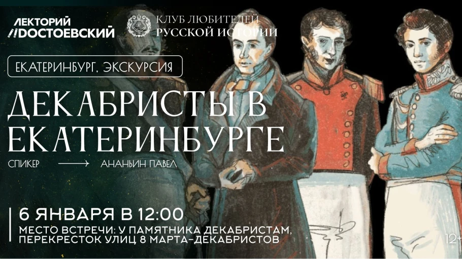 Во время нашей экскурсии мы посетим памятные места, связанные с именитыми узниками, а также узнаем, насколько тесно переплелись пути некоторых декабристов в самом Екатеринбурге, вновь убедившись, что наш город –настоящее место встречи известных деятелей российской истории.