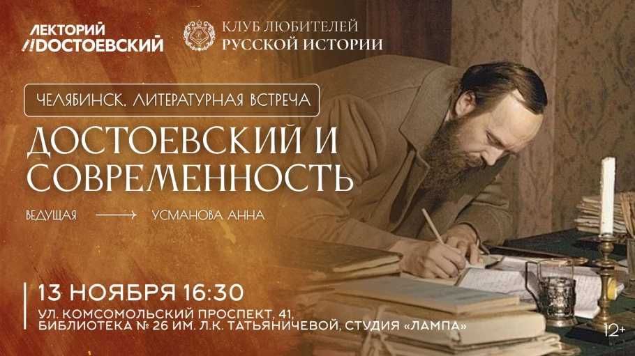 Клуб любителей русской истории в Челябинске приглашает на литературную встречу, посвященную дню рождения Ф.М.Достоевского «Достоевский и современность».