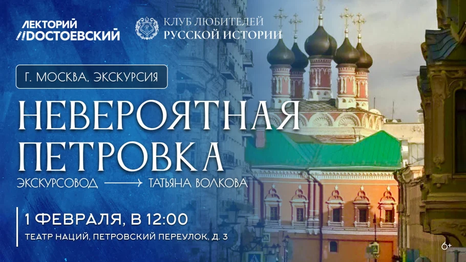 1 февраля (воскресенье) от Лектория Dостоевский ❤️ состоится замечательная экскурсия «Невероятная Петровка», журналиста и гида-экскурсовода, Татьяны Волковой.