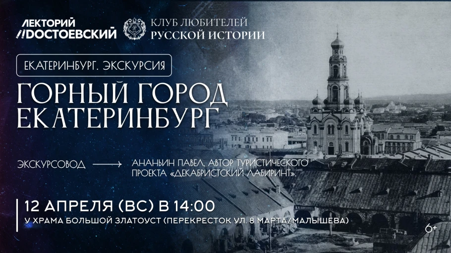 12 апреля Клуб любителей русской истории в Екатеринбурге приглашает на пешеходную экскурсию «Горный город Екатеринбург».