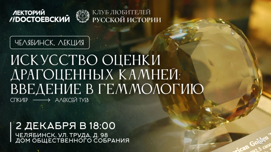 2 декабря Клуб любителей русской истории в Челябинске приглашает на лекцию «Искусство оценки драгоценных камней: Введение в геммологию».