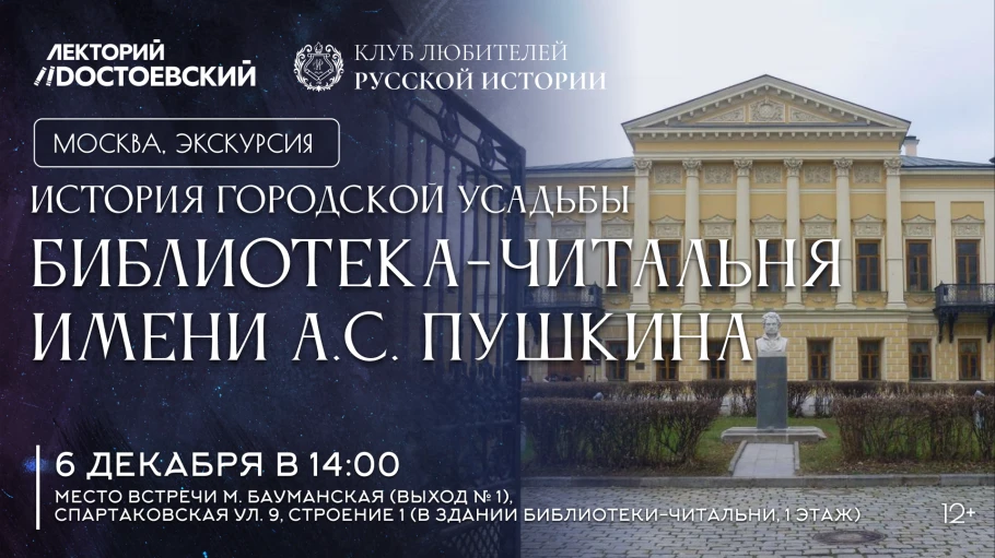 6 декабря Клуб любителей русской истории в Москве приглашает вас на увлекательную экскурсию по старинному особняку на Спартаковской улице, где сегодня расположена библиотека-читальня. имени А.С. Пушкина.