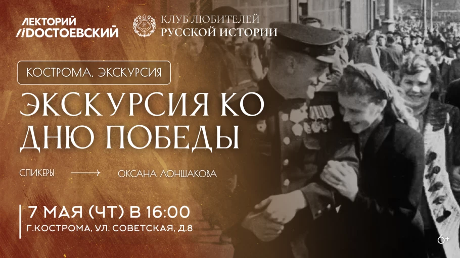 В Костроме — городе трудовой доблести — экскурсия ко Дню Победы! Клуб любителей русской истории приглашает вас 7 мая на особенную экскурсию «Кострома в годы Великой Отечественной войны: от тревожных дней до Великой Победы».