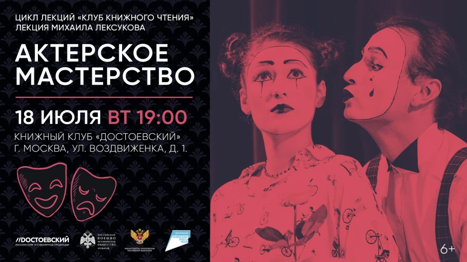 Вас ждет встреча с Михаилом Лексуковым — актером театра и кино. Михаил поделится своим опытом и расскажет как создавать яркие образы, вживаться в разные роли и удерживать внимание аудитории. Вы также сможете задать свои вопросы и получить ценные советы от профессионала. Не пропустите этот шанс окунуться в актерскую атмосферу театра и кино!