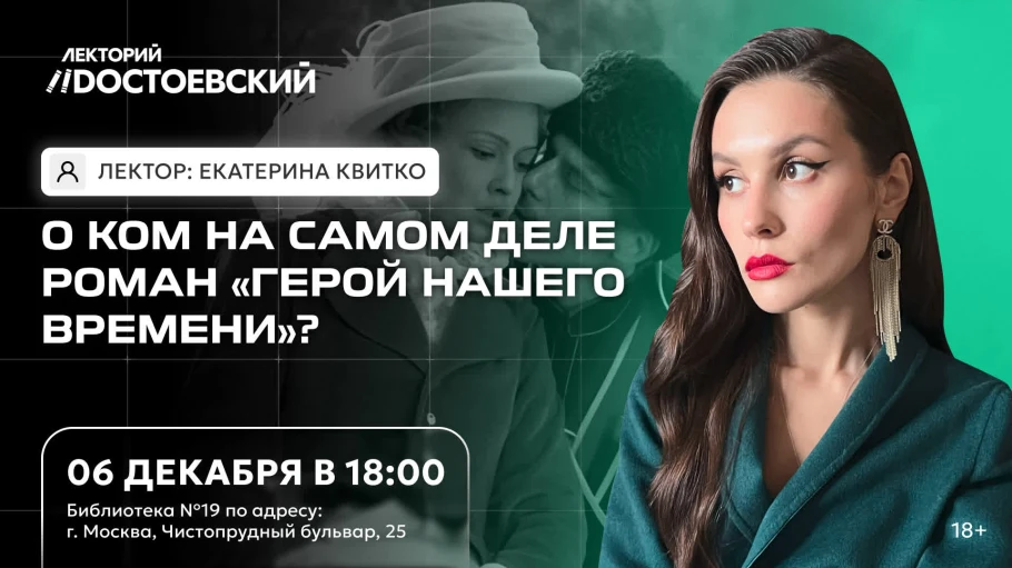 На лекции писатель и литературовед Екатерина Квитко расскажет о новаторстве автора, феномене «лишнего человека» и докажет, почему М. Ю. Лермонтов писал о самом себе. 6 декабря в 18.00 в Библиотеке им. Ф.М. Достоевского по адресу: г. Москва, Чистопрудный бульвар, 25