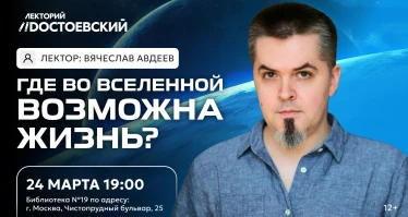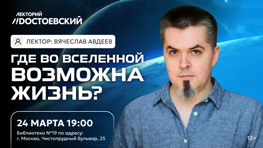 Разберёмся, где во Вселенной действительно могут возникать обитаемые миры на лекции с Вячеславом Авдеевым, создателем проекта “Улица Шкловского” 24 марта в 19:00 в Библиотеке №19 им. Ф.М. Достоевского по адресу: г. Москва, Чистопрудный бульвар, 25.