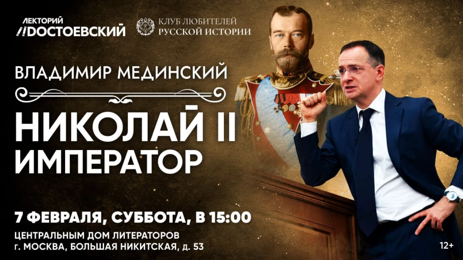 Дорогие друзья, приглашаем вас на публичную лекцию В.Мединского "Николай II. Император"– продолжение беседы о последнем русском монархе.