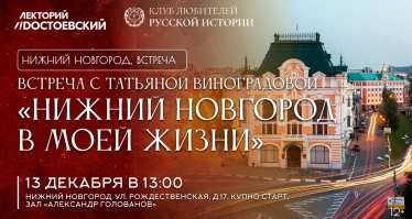 13 декабря Клуб любителей русской истории в Нижнем Новгороде приглашает на встречу с Татьяной Павловной Виноградовой «Нижний Новгород в моей жизни».