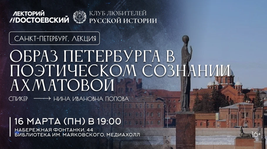 Погрузимся в эволюцию образа! От ранних сборников, где город связан с Пушкиным, до трагедии 1930-х — когда Ахматова отвечает на вопрос «А это вы можете описать?» и создаёт шедевр о сталинском ужасе. Увидите, как Фонтанный Дом открывает глубину исторического времени, память о живых и ушедших. Прочувствуете девиз «Бог сохраняет всё» — из герба Шереметевых — как поэтический взгляд Ахматовой на драматическую историю Петербурга и человечества.