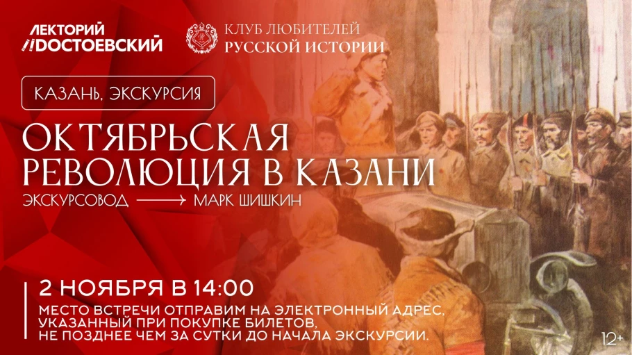 2 ноября (воскресенье) Клуб любителей русской истории в Казани приглашает на экскурсию «Октябрьская революция в Казани». Проведёт экскурсию председатель казанского клуба краевед Марк Шишкин.