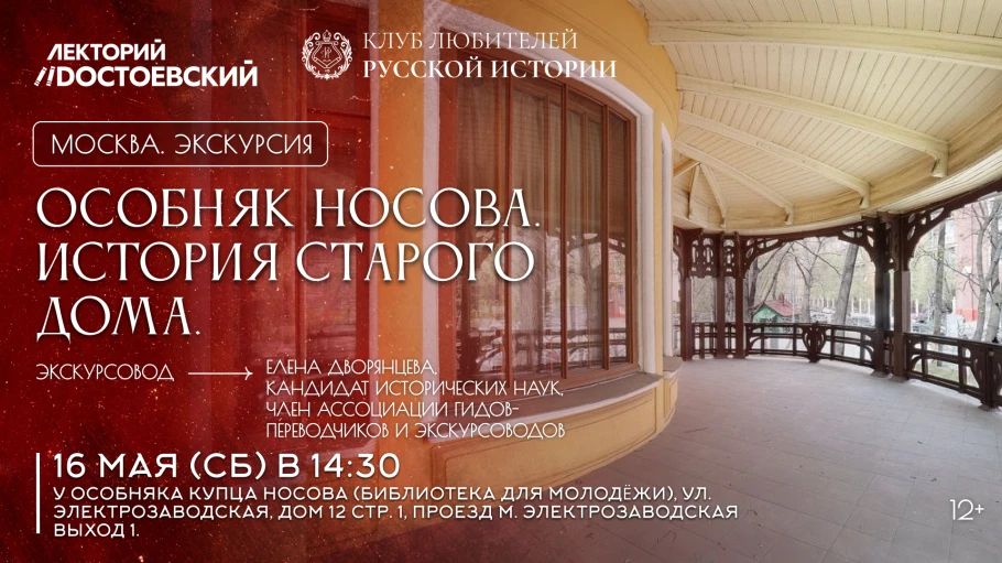 Место встречи: у Особняка купца Носова (Библиотека для молодëжи), ул. Электрозаводская, дом 12 стр. 1, проезд м. Электрозаводская выход 1. Не опаздывайте!