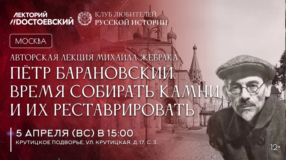 5 апреля Московское отделение Клуба приглашает вас на лекцию - встречу с Михаилом Жебраком «Петр Барановский. Время собирать камни и их реставрировать.»