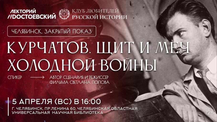 Челябинское отделение клуба любителей русской истории приглашает действующих членов на показ, созданного в Челябинске, фильма "Курчатов. Щит и меч холодной войны".