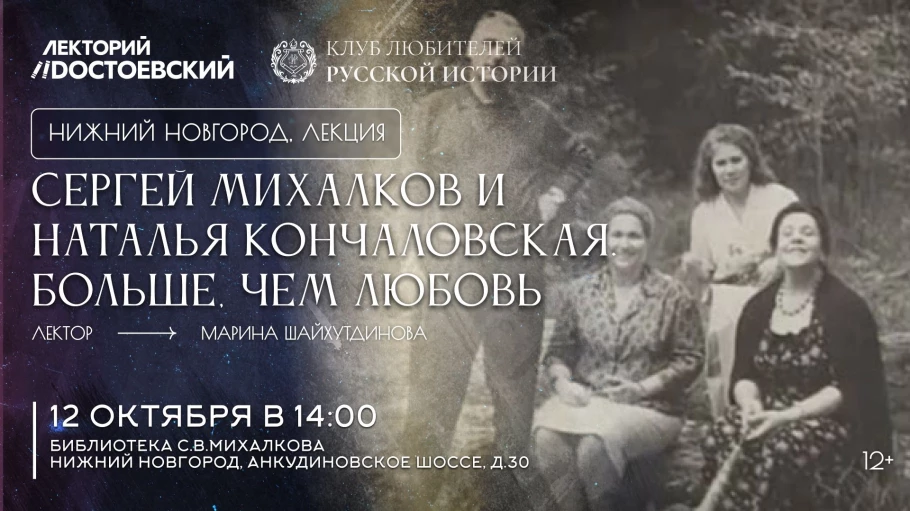 12 октября Клуб любителей русской истории в Нижнем Новгороде приглашает на лекцию «Сергей Михалков и Наталья Кончаловская. Больше, чем любовь» в библиотеке С.В. Михалкова.