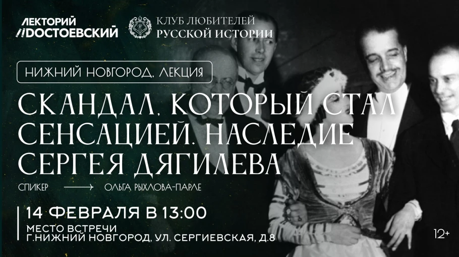 14 февраля Клуб любителей русской истории в Нижнем Новгороде приглашает на лекцию «Скандал, который стал сенсацией. Наследие Сергея Дягилева».