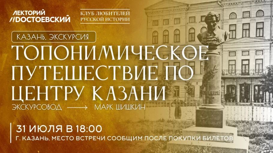 31 июля Клуб любителей русской истории в Казани приглашает на экскурсию «Топонимическое путешествие по центру Казани». Проведет экскурсию председатель казанского клуба, краевед и экскурсовод Марк Шишкин.
