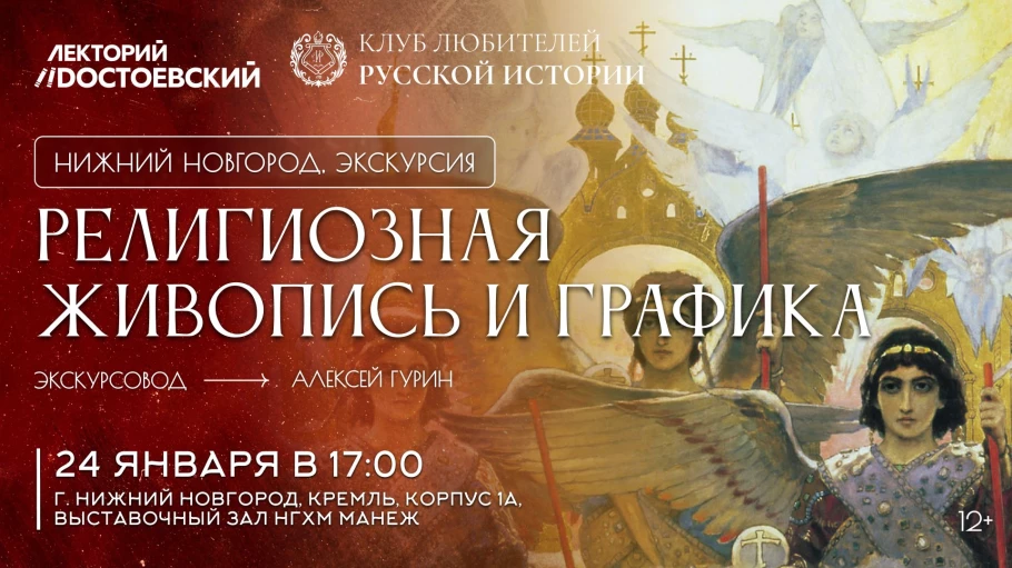 24 января Клуб любителей русской истории в Нижнем приглашает вас на экскурсию научного сотрудника НГХМ Алексея Гурина по выставке «Виктор Васнецов. Радость праведных. Религиозная живопись и графика».