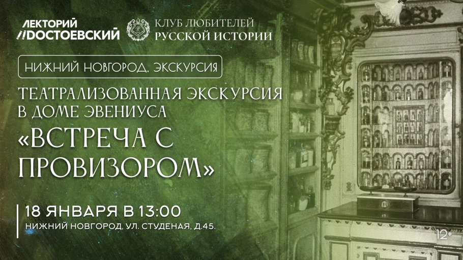 18 января Клуб любителей русской истории в Нижнем Новгороде приглашает на театрализованную экскурсию в дом первого нижегородского аптекаря Николая Васильевича Эвениуса.