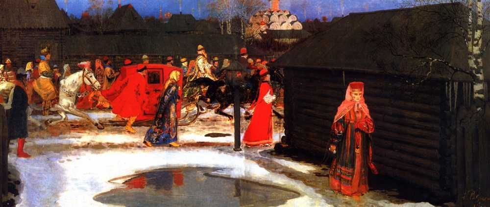 Это произведение, завершённое в 1895 году, мастерски передаёт атмосферу московского быта XVII столетия, демонстрируя глубокое понимание исторических реалий и умение воссоздавать детализированные сцены.