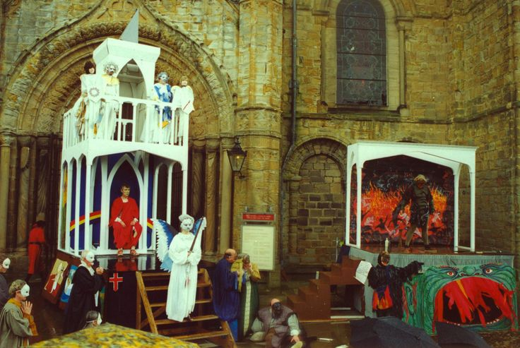 В Средние века в качестве «пугала» часто выступала церковь. В мистериях — театральных постановках по сюжетам Священного Писания — очень наглядно изображались мирские соблазны и посмертные мучения. Дети наравне со взрослыми ужасались проделкам демонов и корчам грешников в аду.