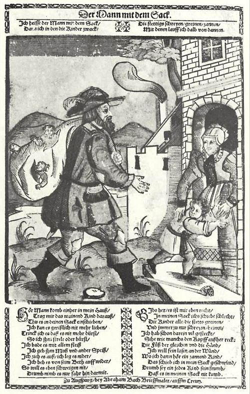 Чтобы напугать непослушных детей, в Европе использовали образ бугимена (буки) — монстра с огромным открытым ртом и длинным языком, который по ночам хватал детей и пожирал их. В Испании детей пугал человек с мешком (hombre del saco) — бродяга с мешком, куда он складывал непослушных детей.