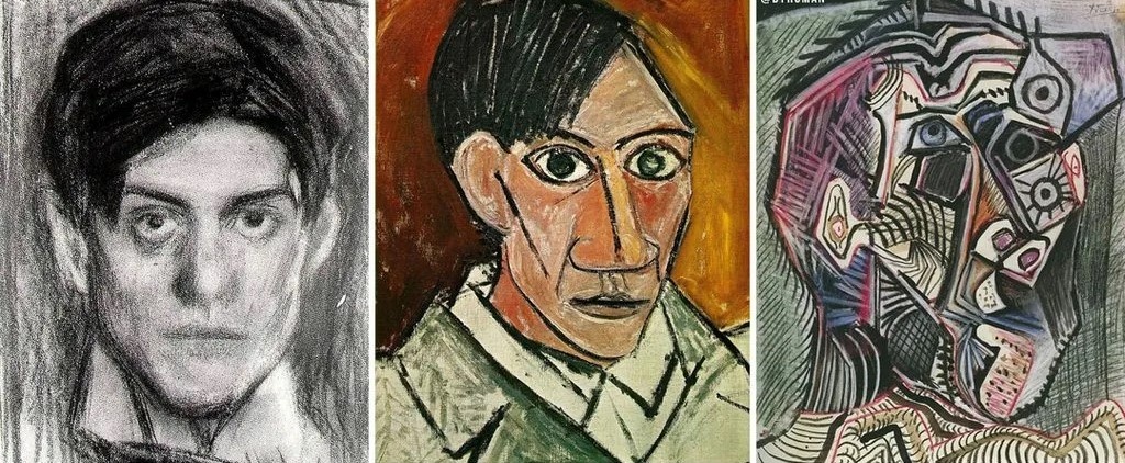 Автопортреты Пикассо в 18, 25 и 90 лет соответственно