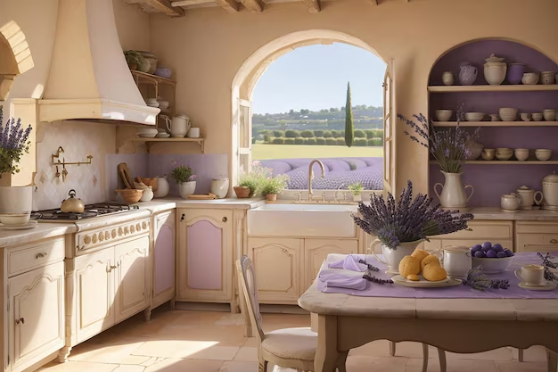 В этих краях ценят семейные и родовые традиции, культивируют память о прошлом, здесь многое отдаленно напоминает средневековый быт. в каменных домах много прочного массивного дерева, утвари, сохраненной ради памяти, а не функции. Но действительно используемую мебель и элементы интерьера часто искусственно состаривают, создавая эффект потертостей и «выгоревших» на солнце тканей. Это подчёркивает связь с природой и временем. Здесь тепло, природа более щедрая, чем на севере. Выживание отодвигалось на второй план, высвобождавшееся время отдавая на украшательства. Поэтому, помимо функциональности, здешний интерьер отличается и декоративностью, вниманием к эстетизации пространства. Изысканная резьба, лепнина, витражи, вышивка, гобелены - все это отличает прованс от других стилей. Живые и сухие цветы, лаванда — обязательные элементы. Кованые подсвечники, ручки мебели, люстры с коваными элементами добавляют интерьеру провинциального шарма.