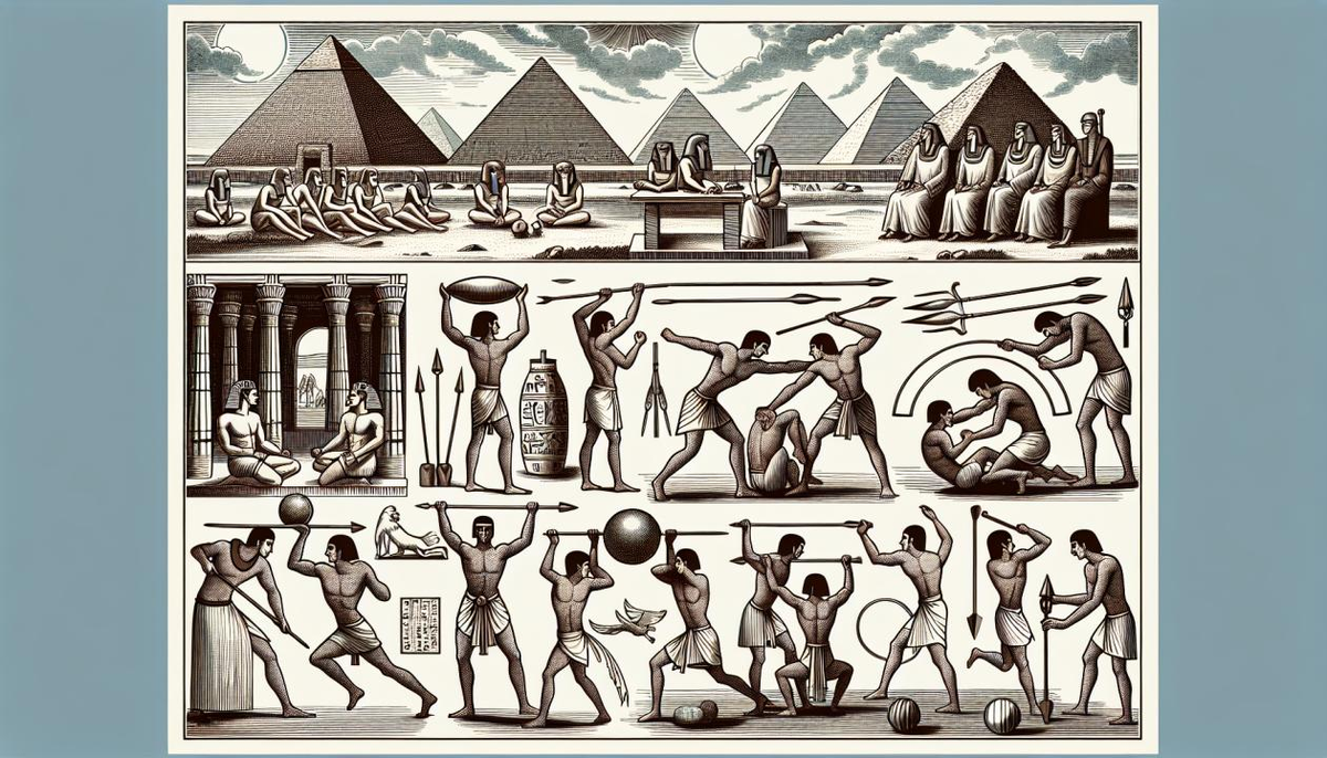 Спортивные игры Египта часто включали в религиозные церемонии и фестивали. Например, во время праздников устраивали имитационные бои между последователями богов Хора и Сета. Соревнования могли проводиться на открытых площадях перед храмами или во дворах царских дворцов.