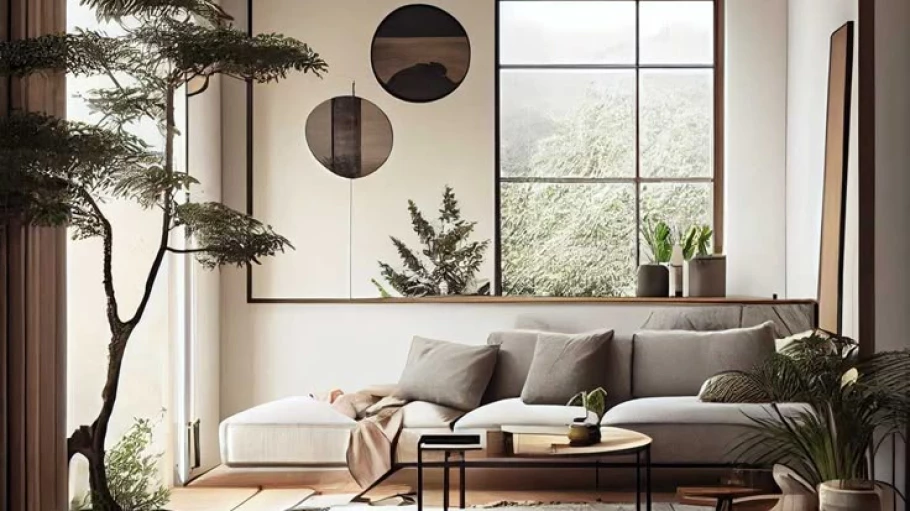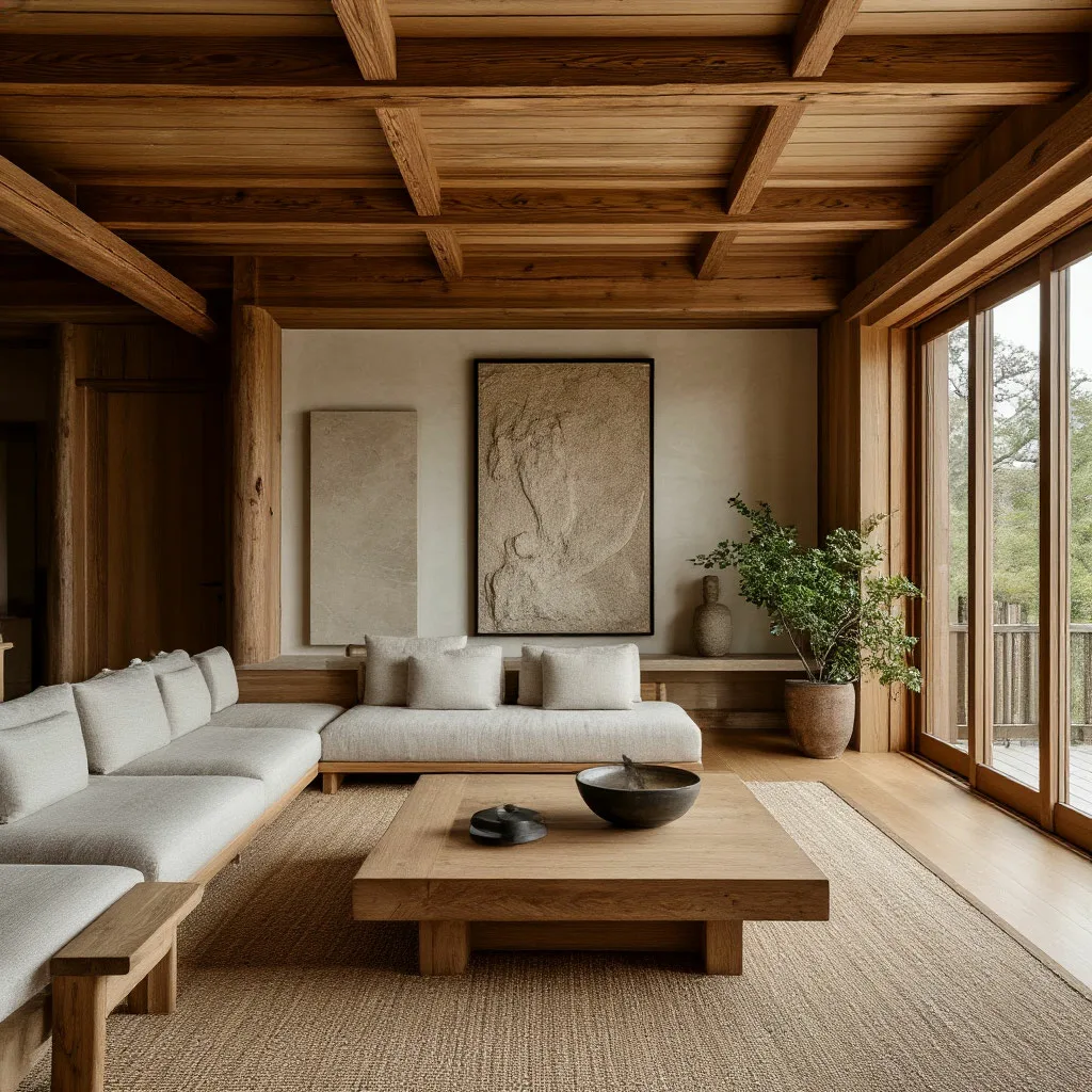 Он объединяет скандинавскую практичность с японской сдержанностью и философией ваби-саби (красота в несовершенстве). Он тоже любит натуральные материалы - в отделке используют дерево, камень, микроцемент, штукатурка с имитацией натуральных поверхностей. В мебели чаще всего бамбук, берёза и другие светлые породы дерева. Преобладают природные приглушённые светлые оттенки: бежевый, песочный, сливочный, серый, светло-коричневый. Если есть акценты, тогда это чёрный, пастельный зелёный или голубой. Мебель и декор лишены витиеватости, преобладают прямые и округлые формы. В этом кроется сочетание простоты скандинавского стиля и японского минимализма.