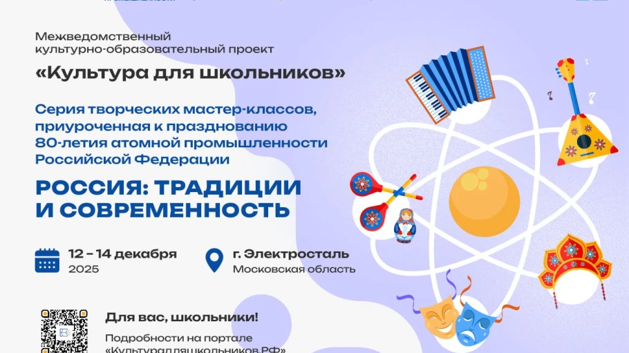 В Электростали Московской области в рамках межведомственного культурно-образовательного проекта «Культура для школьников» и при содействии программы «Территория культуры Росатома» пройдёт финальная серия творческих мастер-классов.