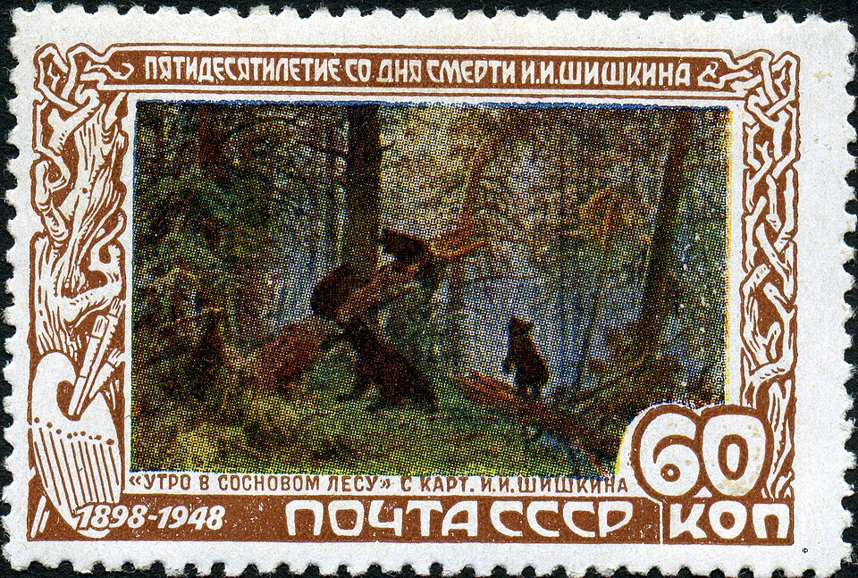 В 1948 году в СССР выпустили почтовую марку номиналом 60 копеек из выпуска «50 лет со дня смерти художника И. И. Шишкина». На ней была изображена картина «Утро в сосновом лесу».
